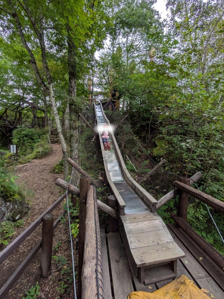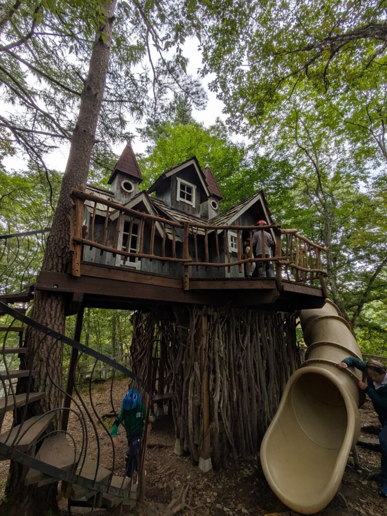 滑り台、丸太、ジップライン、ブランコ、ツリーハウス…