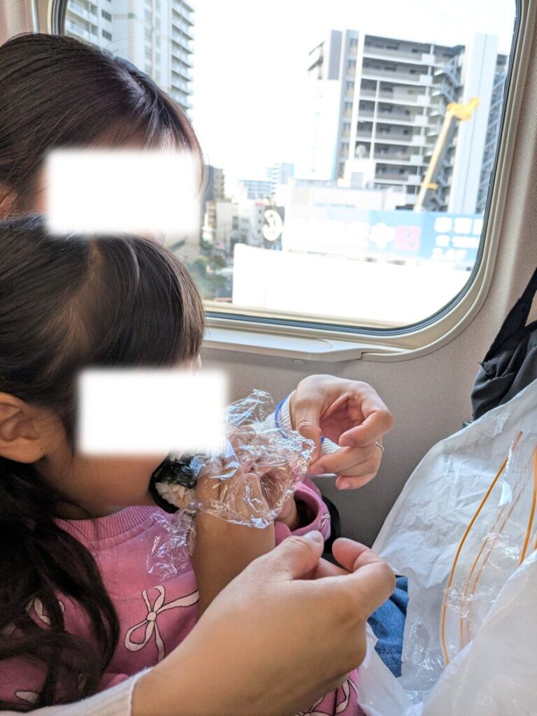 新幹線の中では、軽く朝ごはんタイム。